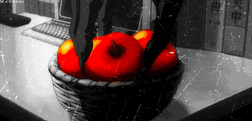 Las manzanas también simbolizan el "fruto prohibido" porque se piensa generalmente que es la fruta que se menciona en el libro bíblico del Génesis en el que la serpiente le dijo a Eva que comer el fruto del Árbol del Conocimiento del Bien y del Mal le daría el mismo estatus que Dios. El objetivo de Light es convertirse en un "dios", por lo tanto, confirma esta teoría. Aunque, Ohba dijo en una entrevista para "Death Note: How to read" que eligió manzanas porque pensó que era "guay". Las manzanas se han convertido en una mercancía muy popular o la moneda en el Reino Shinigami. Ryuk regresa con una cantidad desconocida después del final de la serie. En el manga, Midora soborna al rey Shinigami con 13 manzanas que ella había hecho volver del mundo de los humanos con el fin de recibir una Death Note extra, que le da a C-Kira. Gukku, uno de los primeros Shinigami vistos en la serie, comentó en el one-shot que Ryuk trayendo manzanas humanas al Reino Shinigami es la razón por la que las Death Note se vuelven accesibles más fácilmente. Gukku también afirma que "no sabe si eso es bueno o no".