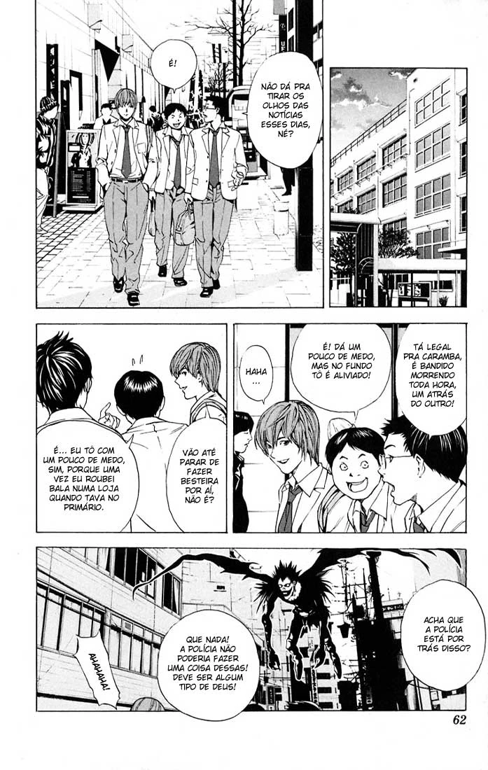 Light voltando da escola com seus amigos (e Ryuk o seguindo como prometido).