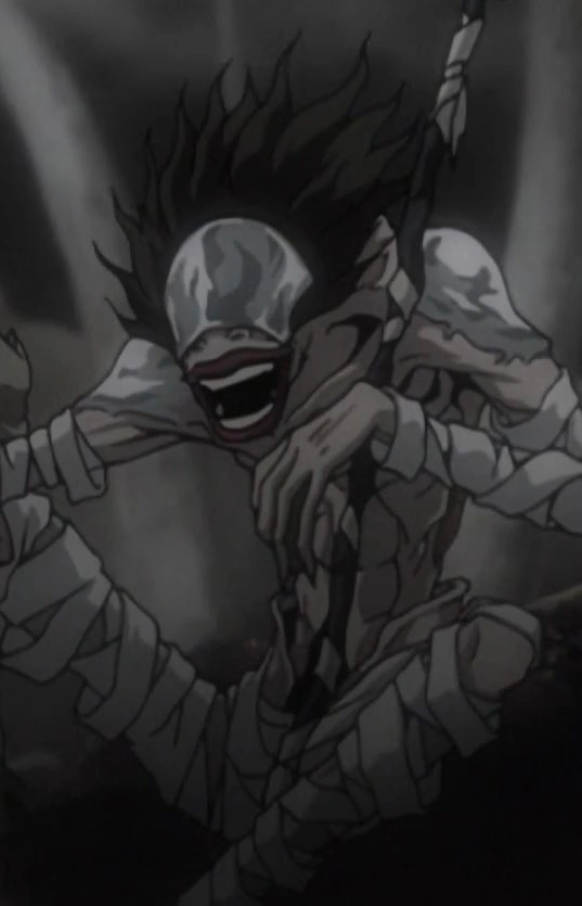 His last official appearance in the series was in the OVA Death Note Relight 1: Visions of a God, where an unnamed Shinigami is speaking to him, Gook, and Zellogi, asking where Ryuk is.