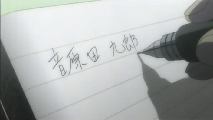 At home, Light Yagami has only recently acquired the Death Note. Deciding to test it on someone who deserves to die, he writes "Kurou Otoharada" and waits 40 seconds. When nothing happens, he assumes the notebook is a fake. Moments later, the news reports that the hostages are leaving the building and police are entering it. Otoharada is soon reported to have died of a heart attack.